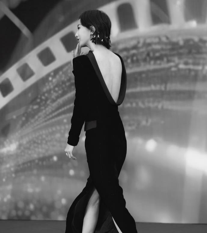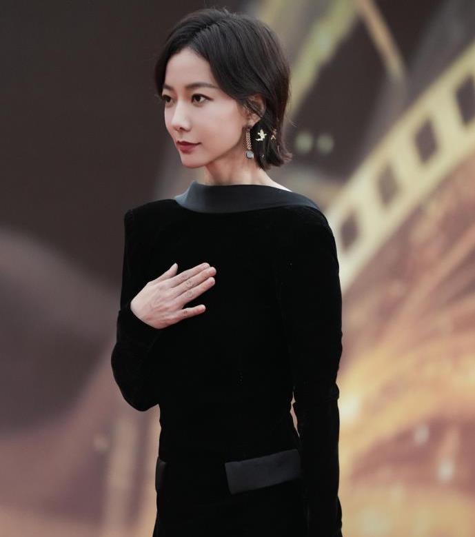 王珞丹留着短发,干练又带点英气,一身黑色丝绒礼服,侧拉高开的下摆,走上红毯时气场十足,每迈出一步都像在心头重重踏下一脚。