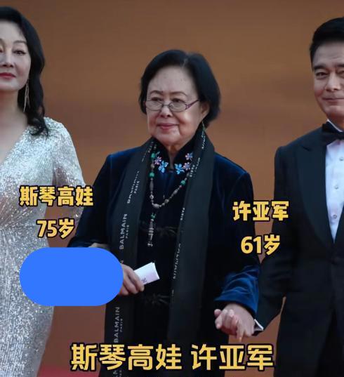 在闭幕式走红毯那会儿,斯琴高娃被许亚军和王姬两人一左一右搀着,场面还挺温馨的。